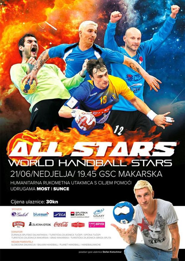 Ulaznica za sutrašnju humanitarnu All Star rukometnu utakmicu možete nabaviti u makarskom Turist Biro Makarska i u Sport caffeu u Gradskoj sportskoj dvorani po cijeni