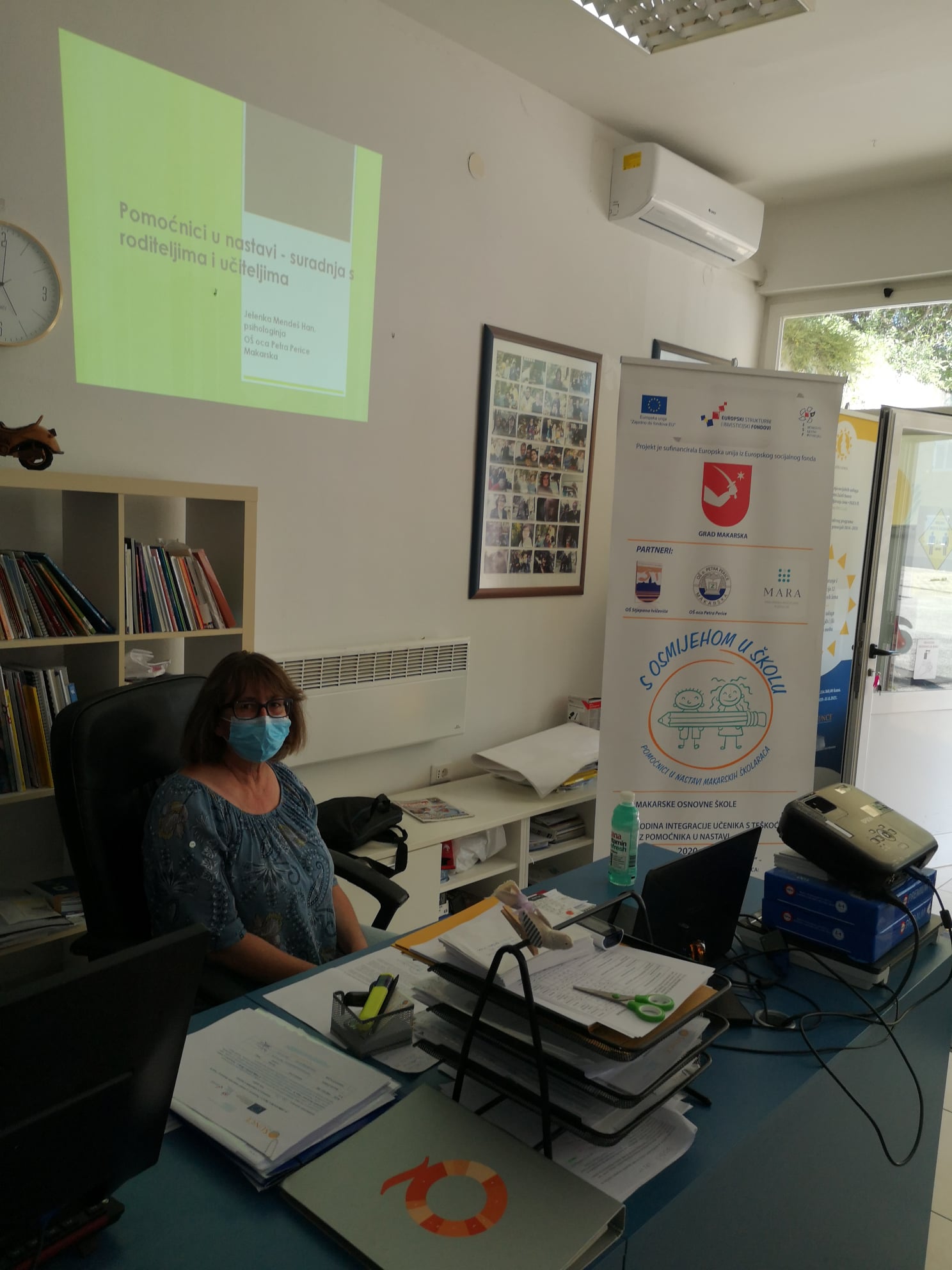 Ovih dana u prostoriji naše Udruge održava se edukacija za 11 novih pomoćnika u nastavi u projektu ,,S osmijehom u školu – Pomoćnici u nastavi makarskih školaraca, Faza III”.