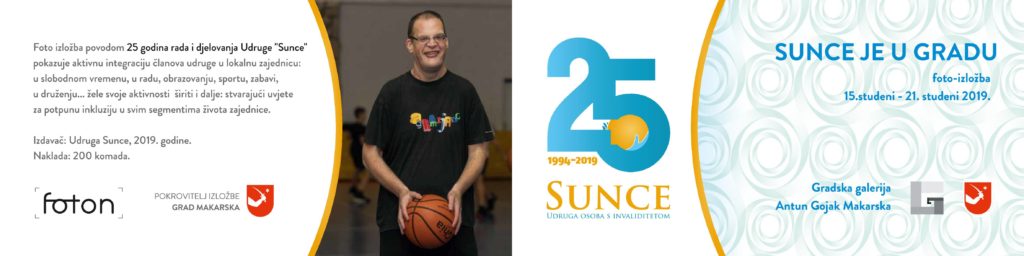 Foto izložba povodom 25 godina rada i djelovanja Udruge “Sunce” pokazuje aktivnu integraciju članova udruge u lokalnu zajednicu: u slobodnom vremenu, u radu, obrazovanju, sportu, zabavi, u druženju… Žele svoje aktivnosti širiti i dalje: stvarajući uvjete za potpunu inkluziju u svim segmentima života zajednice.